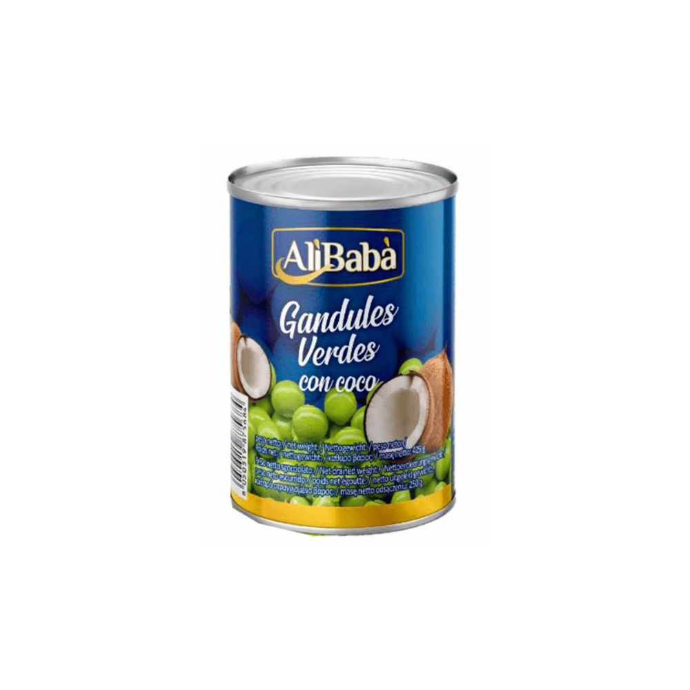 Ali Baba Green Pigeon Peas with Coconut combine tender pigeon peas with rich, creamy coconut flavor. Ready to eat and perfect for traditional Caribbean dishes, curries, and hearty sides.