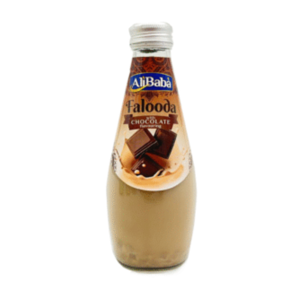 Scopri il gusto indulgente di Alibaba Falooda al Cioccolato, una bevanda cremosa ed esotica ispirata al famoso dessert del Sud Asia, il Falooda. Questa bottiglia da 290ml offre un sapore intenso di cioccolato combinato con ingredienti tradizionali come semi di basilico e vermicelli, per una consistenza unica e un gusto inconfondibile.