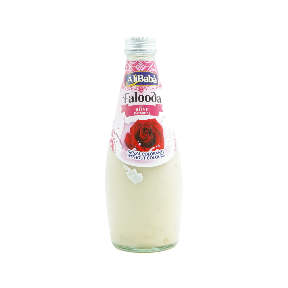 Scopri il gusto raffinato di AliBaba Falooda al Gusto Rosa, una bevanda cremosa e aromatica ispirata al tradizionale dessert del Sud Asia, il Falooda. Questa bottiglia da 290ml combina l’essenza floreale della rosa con una base di latte, arricchita da semi di basilico e vermicelli per una consistenza unica e un sapore appagante.