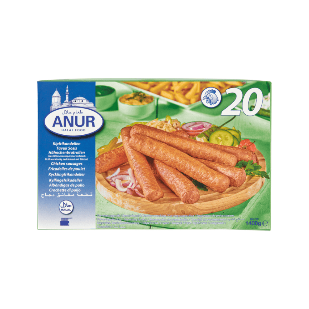 Anur Minis Chicken Sausages are delicious bite-sized halal sausages made from high-quality chicken and perfectly seasoned for a savory, juicy flavor. Ideal for breakfast, snacks, or party platters, they’re quick to cook and loved by all ages.