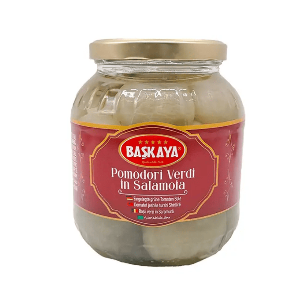 Baskaya Green Tomatoes In Brine are a traditional Mediterranean delicacy made from firm, unripe green tomatoes carefully preserved in a tangy vinegar brine. Their crisp texture and mildly tart flavor make them a unique and refreshing addition to many dishes. Enjoy them as a side, in salads, or as a flavorful garnish for meats and sandwiches.