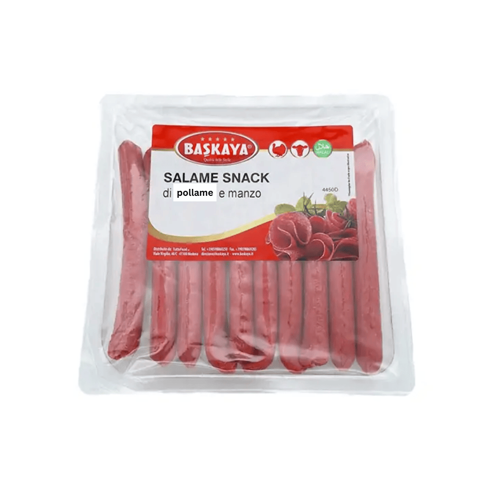 Baskaya Salami Snack With Chicken and Meat is made from premium quality chicken and beef, seasoned for a rich and savory flavor. Perfect as a quick snack, for sandwiches, or on-the-go meals, these ready-to-eat salami pieces deliver consistent taste and texture. Conveniently packed, they are suitable for both home use and professional kitchens.