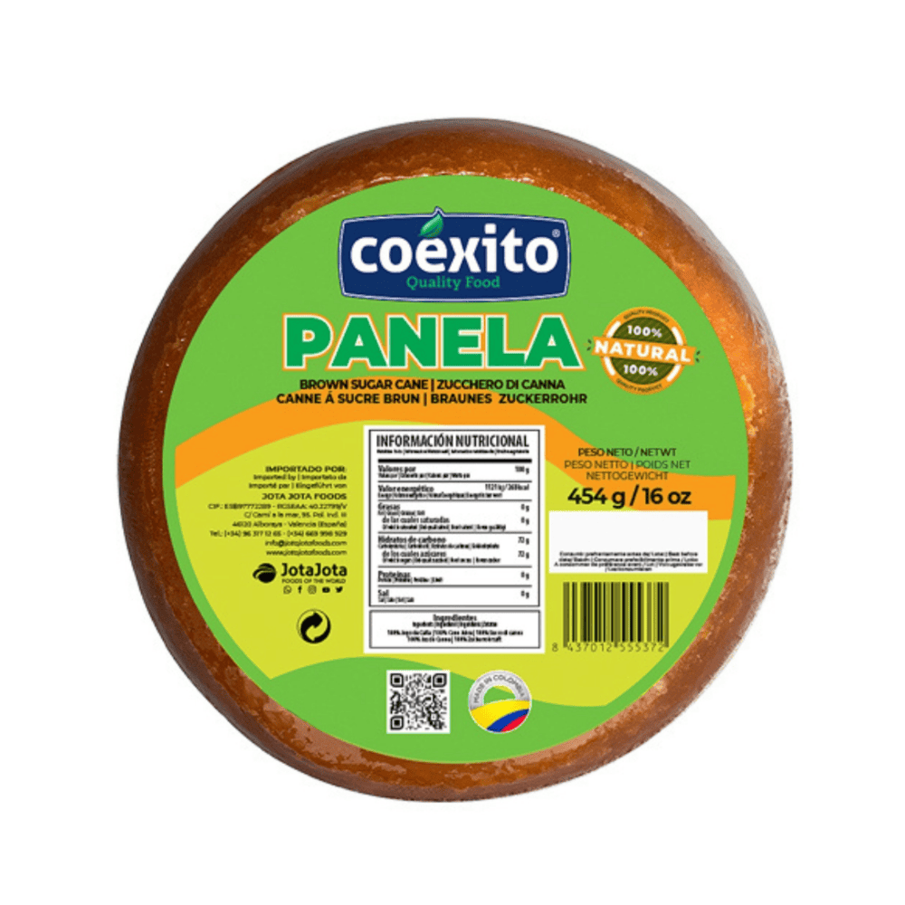 Coexito Panela is 100% unrefined whole cane sugar, rich in natural minerals and caramel-like sweetness. A wholesome alternative to refined sugar, perfect for beverages, desserts, and baking.