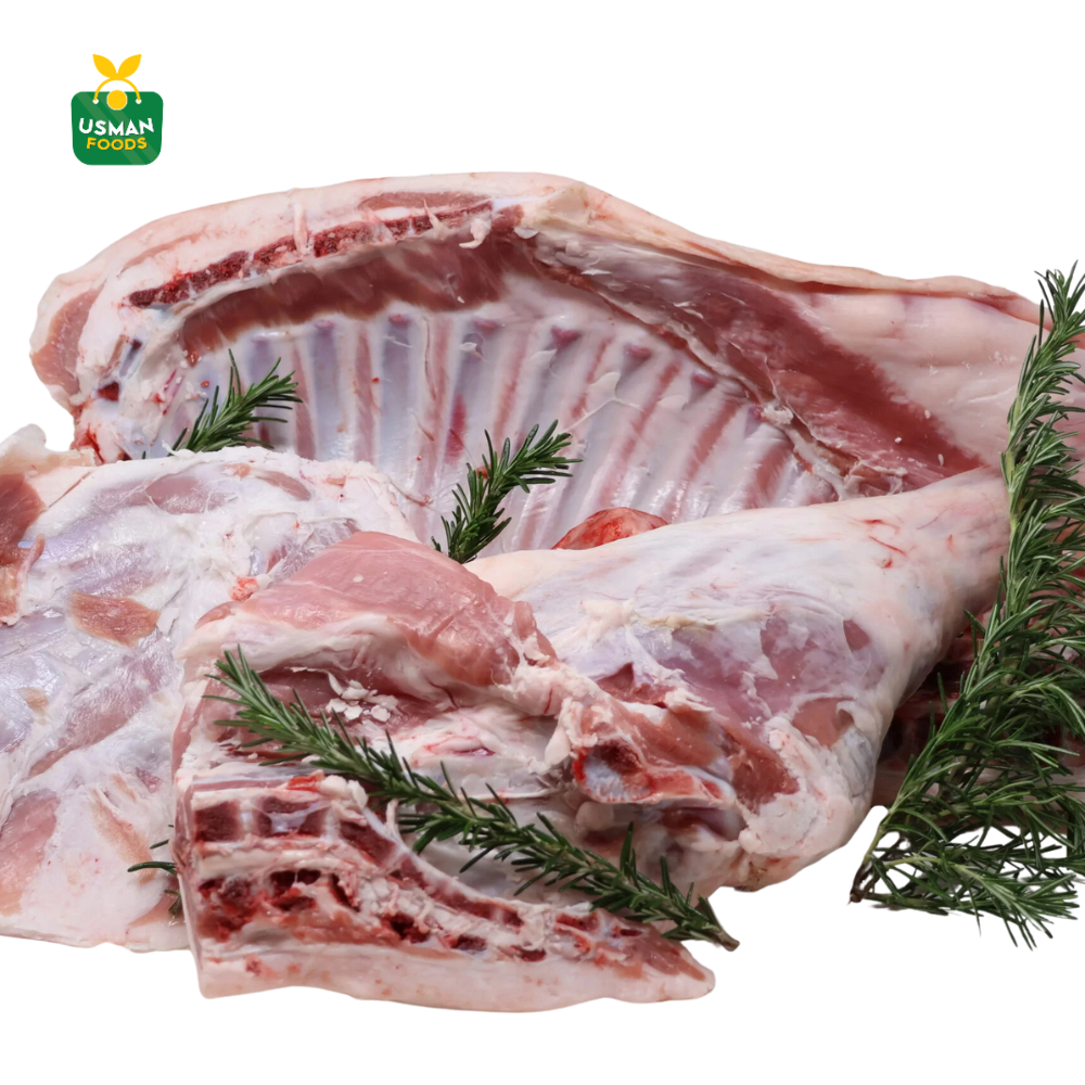 A selection of fresh Halal lamb cuts (leg, shoulder, chops, etc.), ideal for stews, curries, or traditional oven and saucy dishes. Tender, flavorful meat — rich in taste and protein.