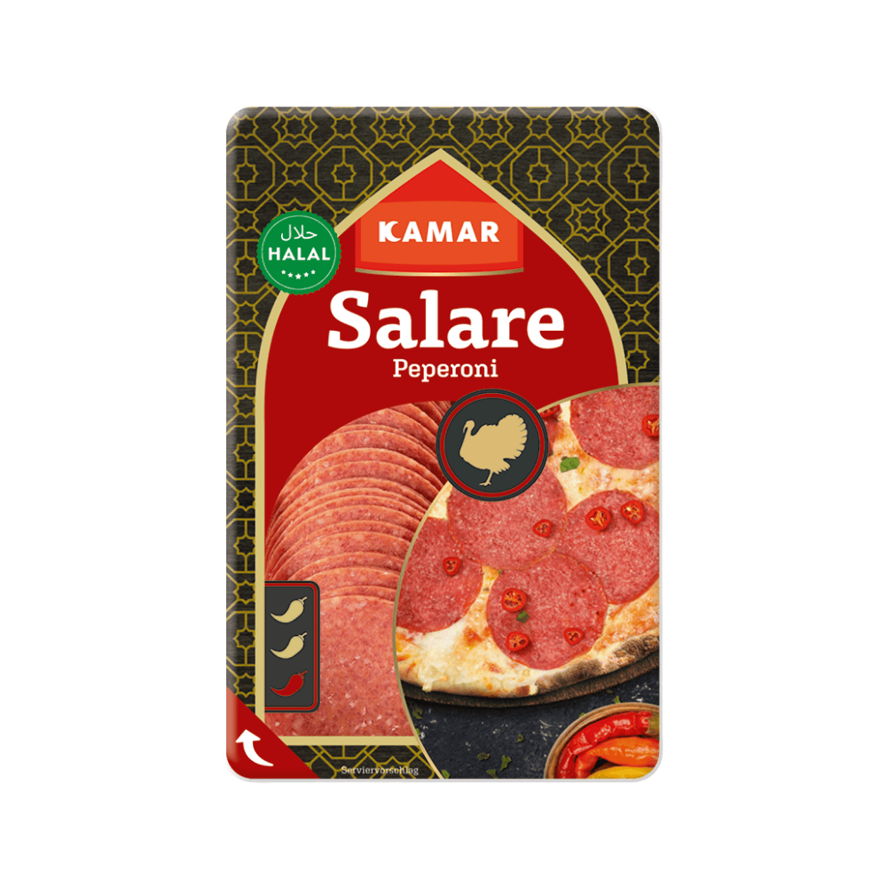 Kamar Halal Pepperoni Salami is made from premium halal meat, seasoned with a blend of spices to deliver the classic bold and savory pepperoni flavor. Ideal for pizzas, sandwiches, wraps, or quick snacks, this ready-to-eat salami offers consistent taste and texture. Convenient and hygienically packed, it is suitable for both home use and professional kitchens.