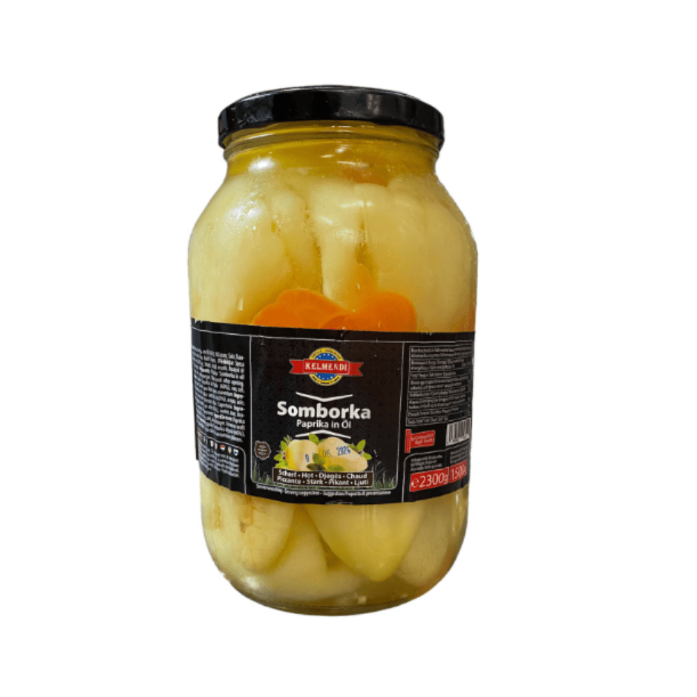 Kelmendi Somborka Paprika with Cabbage Pickles is a traditional Balkan specialty made from tender somborka peppers carefully stuffed with finely shredded cabbage. Naturally pickled in a flavorful brine, it offers a perfect balance of tanginess, crunch, and freshness. Ideal as a side dish, salad, or accompaniment to grilled meats, these pickled peppers bring authentic homemade taste to your table.