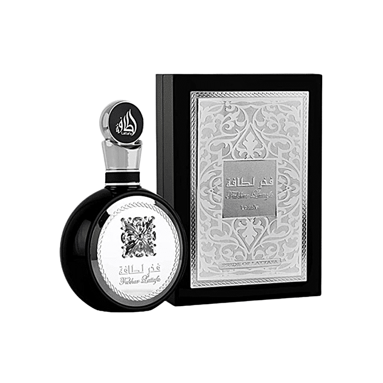Fakhar Black è racchiuso in un flacone nero lucido che riflette il suo carattere deciso. La confezione elegante lo rende perfetto come regalo o per un tocco di lusso personale.