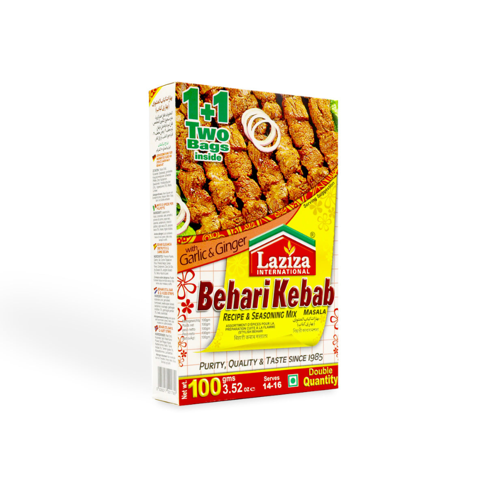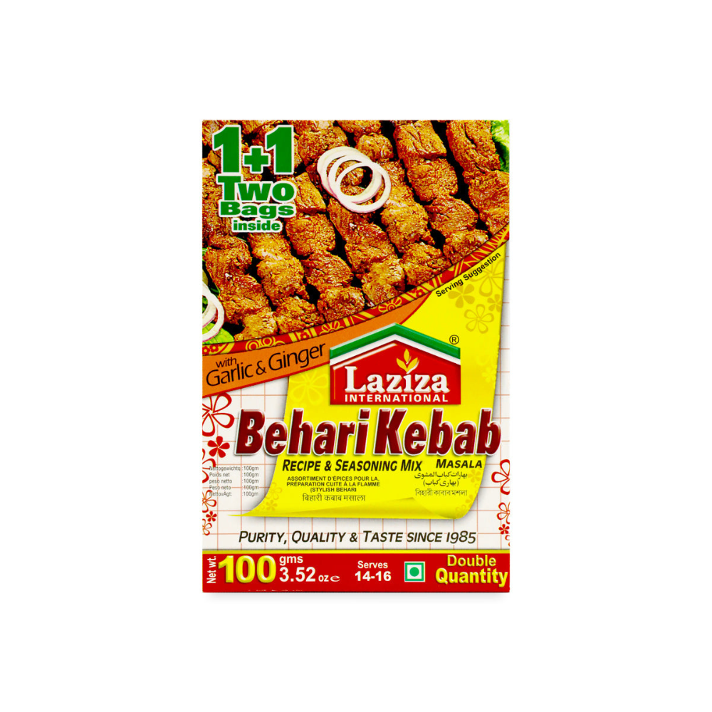 Laziza Behari Kabab Masala 100g offers the authentic taste of traditional Behari-style kababs. Made from a rich blend of aromatic spices, it gives your kababs a smoky flavor, tender texture, and mouthwatering aroma — perfect for BBQs, family meals, and festive occasions.