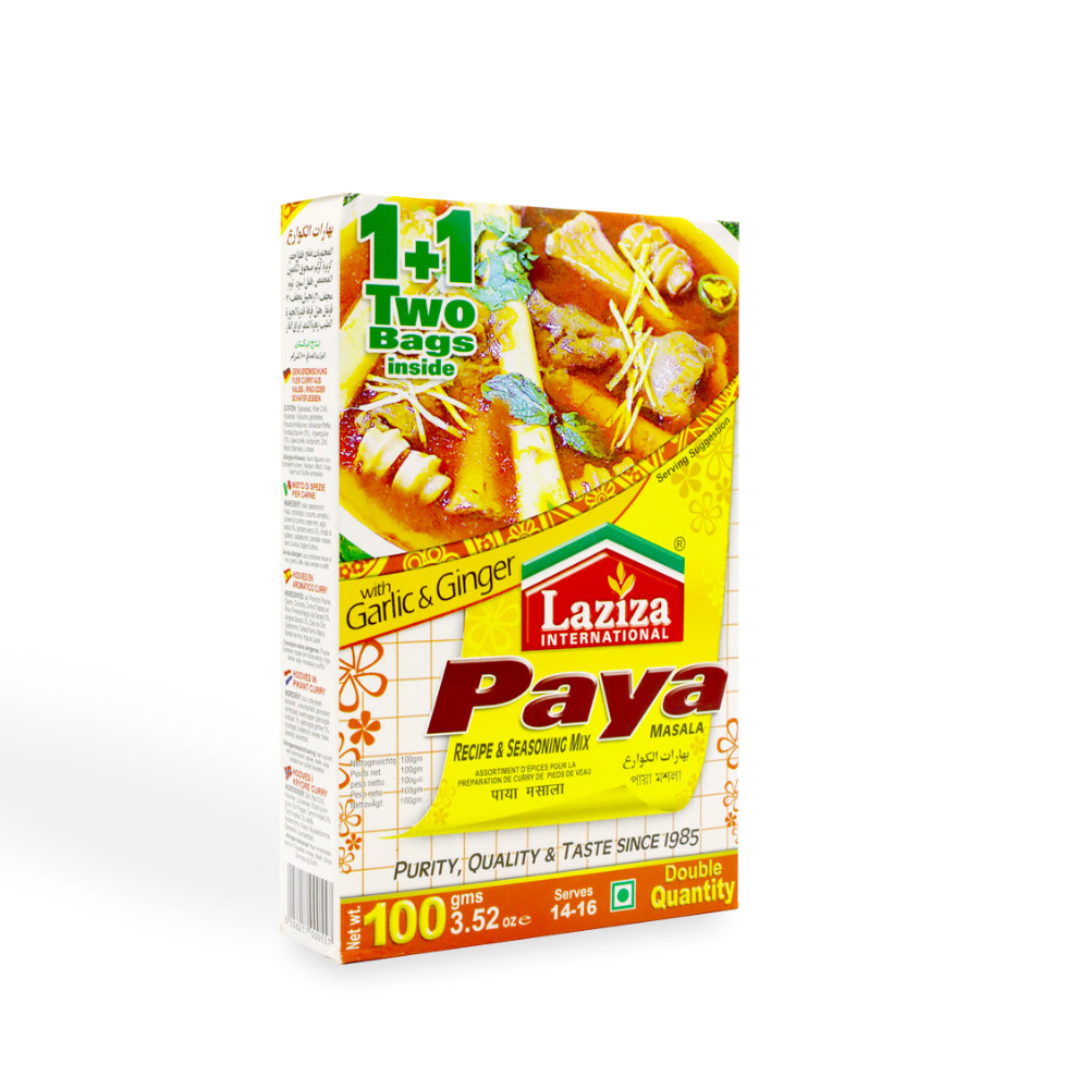 Laziza Paya Masala 100g delivers the authentic, traditional taste of slow-cooked paya curry right to your kitchen. Made with a perfect mix of premium spices, it enhances the aroma, flavor, and richness of your dish — giving you a restaurant-style experience at home.
