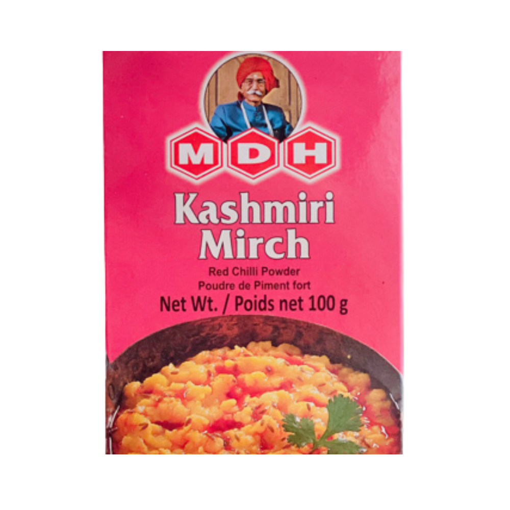 MDH Kashmiri Mirch adds a rich red color and mild spice to your favorite dishes. Made from premium quality Kashmiri red chilies, it enhances the visual appeal and flavor of curries, gravies, and marinades — giving your food a delicious, appetizing look without too much heat.