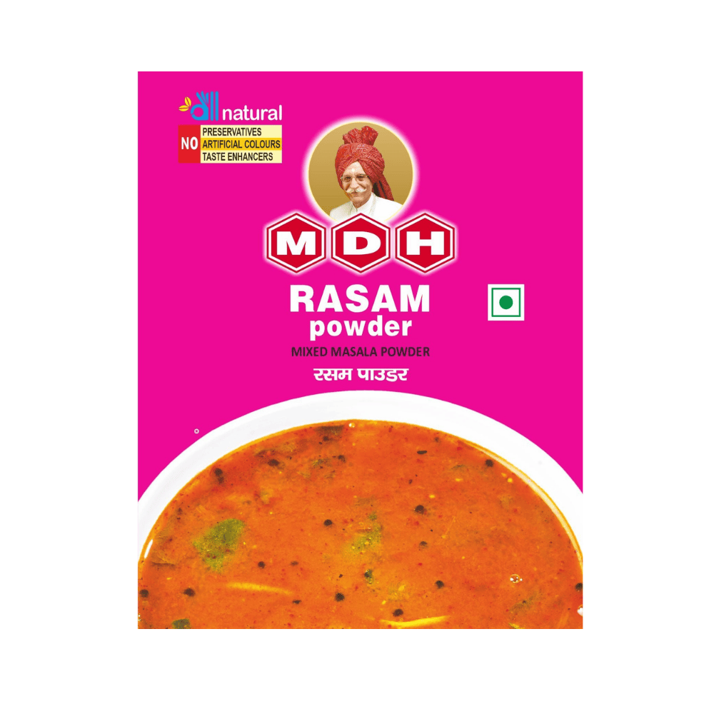 MDH Rasam Powder brings the authentic South Indian flavor of tangy, spicy rasam to your kitchen. Made with a special blend of lentil-friendly spices, tamarind, and aromatic herbs, it helps you prepare a flavorful, comforting soup that pairs perfectly with rice or can be enjoyed on its own.