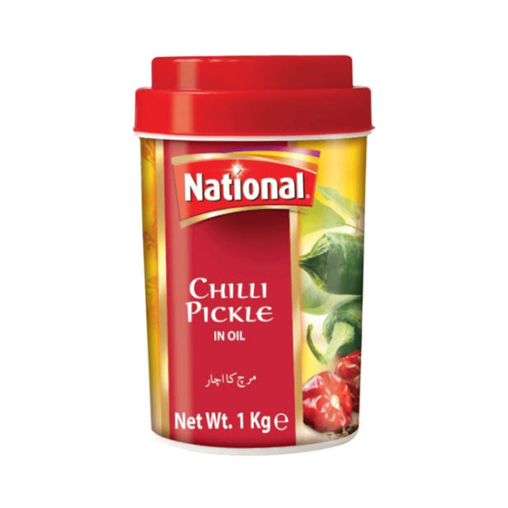 National Chilli Pickle (1KG) is a spicy and tangy blend of fresh green chillies, traditional spices, and pure edible oil. Bursting with bold flavor and authentic South Asian taste, it’s the perfect condiment to spice up any meal.