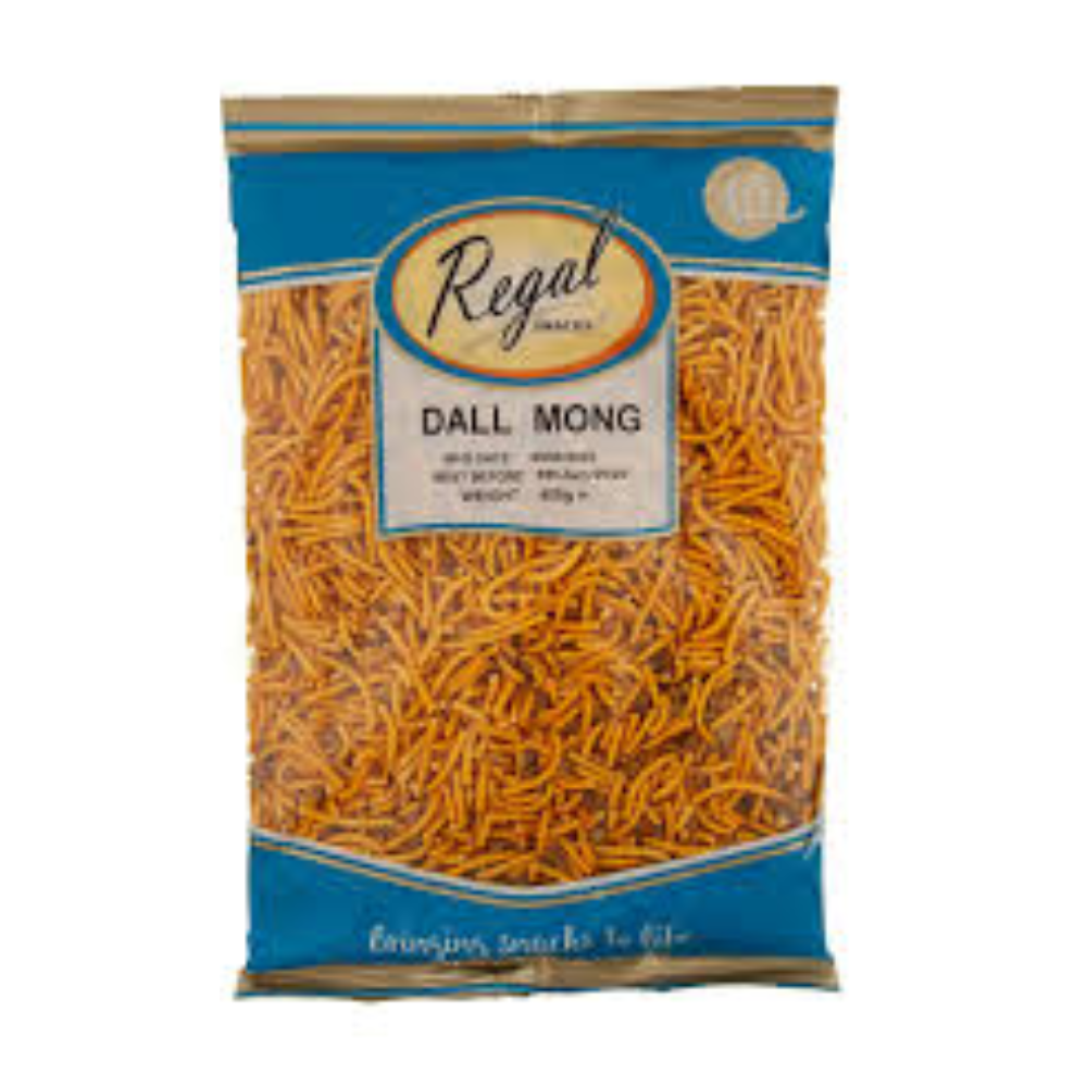 Enjoy the classic crunch of Regal Moong Daal — a traditional South Asian snack made from golden fried lentils, lightly salted for a perfect savory bite.