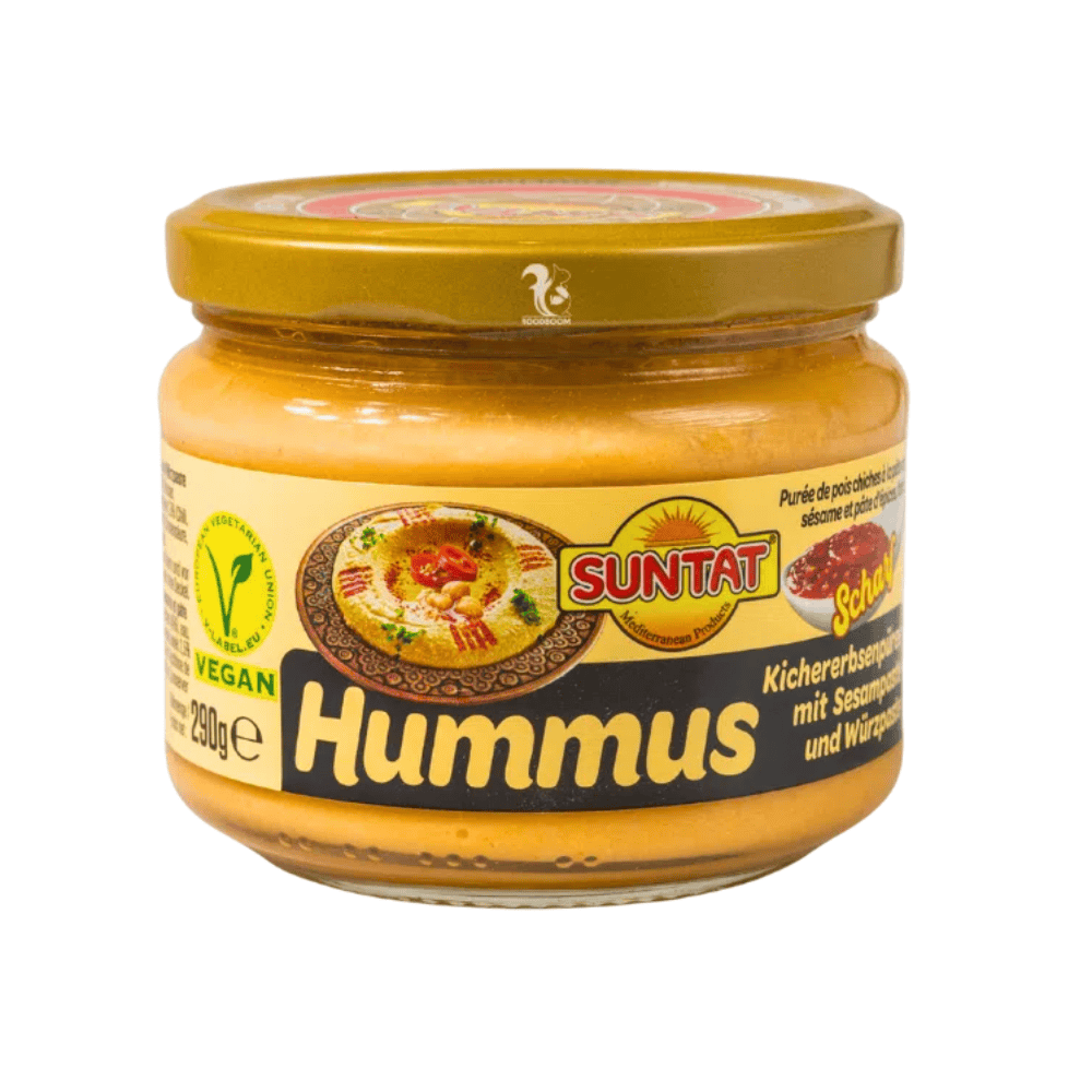 Suntat Spicy Flavor Hummus is a smooth and creamy chickpea spread infused with a bold kick of spice. Made from high-quality chickpeas, tahini, olive oil, and a blend of hot seasonings, this hummus delivers a perfect balance of rich flavor and gentle heat. Ideal as a dip, spread, or side dish, it brings authentic Mediterranean taste to every bite.