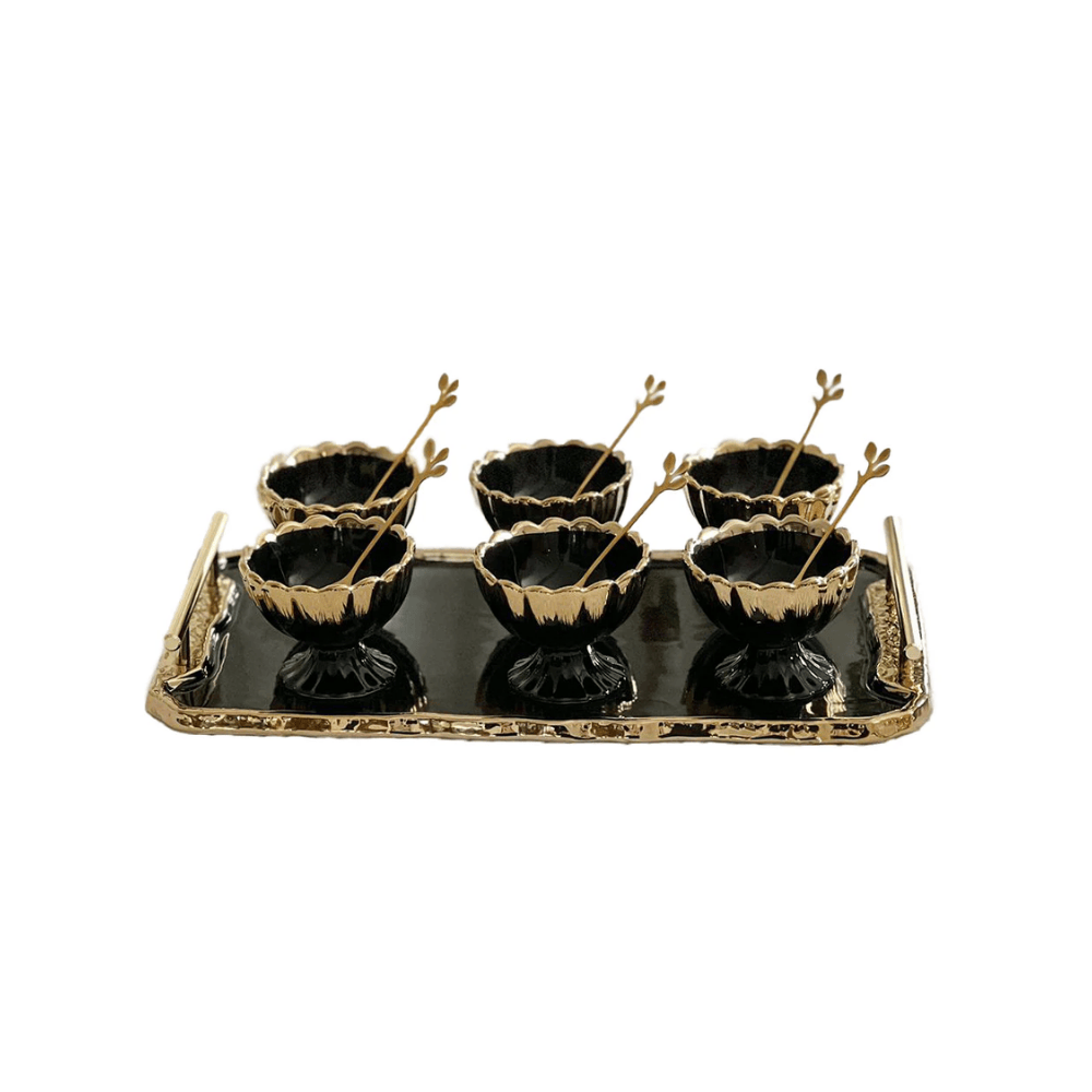 Eleganti Tazze da Dessert in Porcellana con Vassoio, perfette per servire dolci, creme o gelati con stile. Realizzate in porcellana di alta qualità, combinano design raffinato e praticità, rendendo ogni momento di dessert speciale e sofisticato.