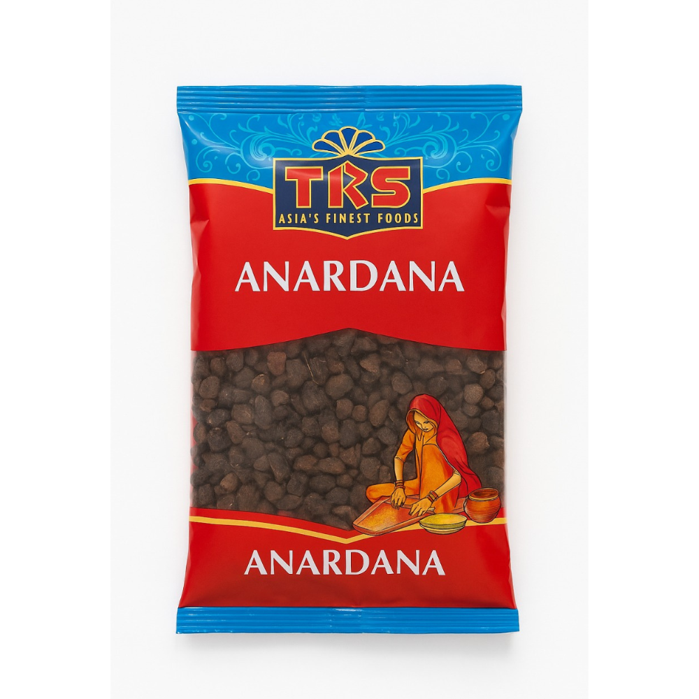 TRS Anardana is dried pomegranate seeds with a tangy, sweet-sour flavor, commonly used in Indian cooking to add zest to curries, chutneys, and snacks.